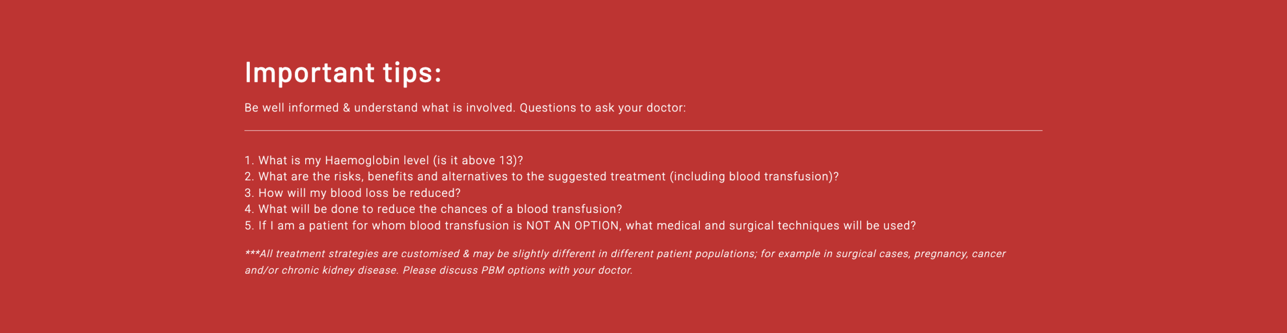 - If you have a planned surgery. Always ask your Doctor to check your Haemoglobin – ideally at least 4 weeks before surgery.